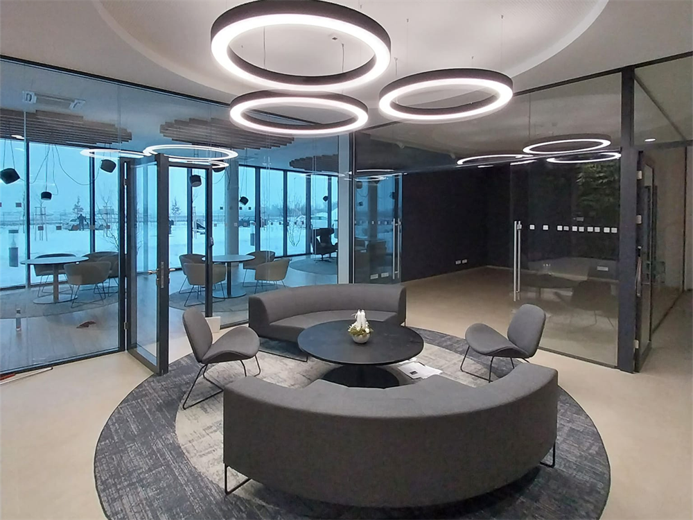 Thanks to the open KNX protocol, the building integrates with different systems such as the weather station. By harnessing real-time weather data, our smart system autonomously controls all curtains, optimizing indoor lighting conditions in alignment with natural light and weather conditions.